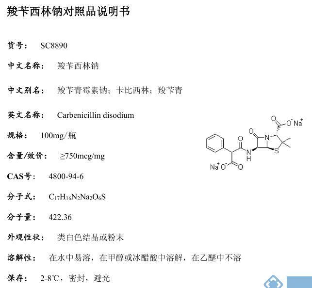 产品名称: Carbenicillin disodium;羧苄西林钠